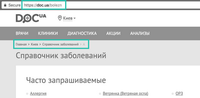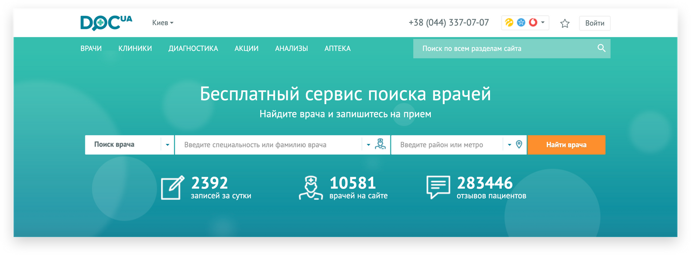 It means we need to pay attention to what people see in the first place when they are visiting Doc.ua — landing pages.