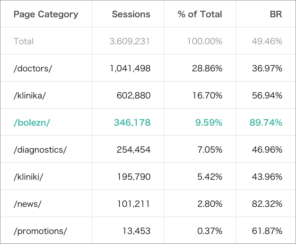 On average, almost 10% of all users are browsing Disease Directory pages and Bounce Rate is twice higher than the general Bounce Rate.